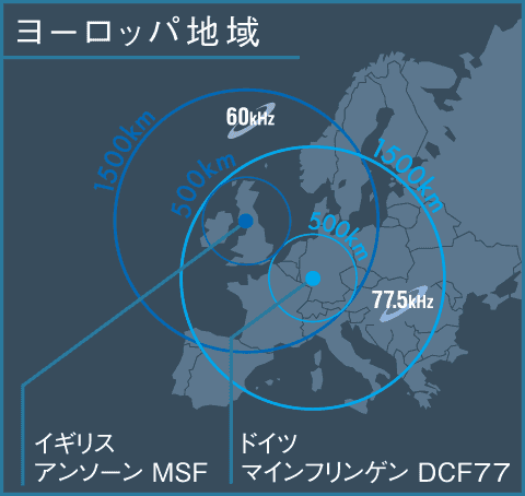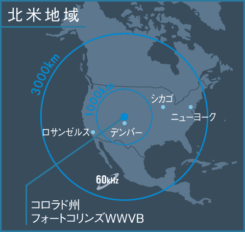 世界6局の標準電波を受信。日本、北米、欧州、中国での自動時刻修正を実現。